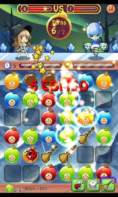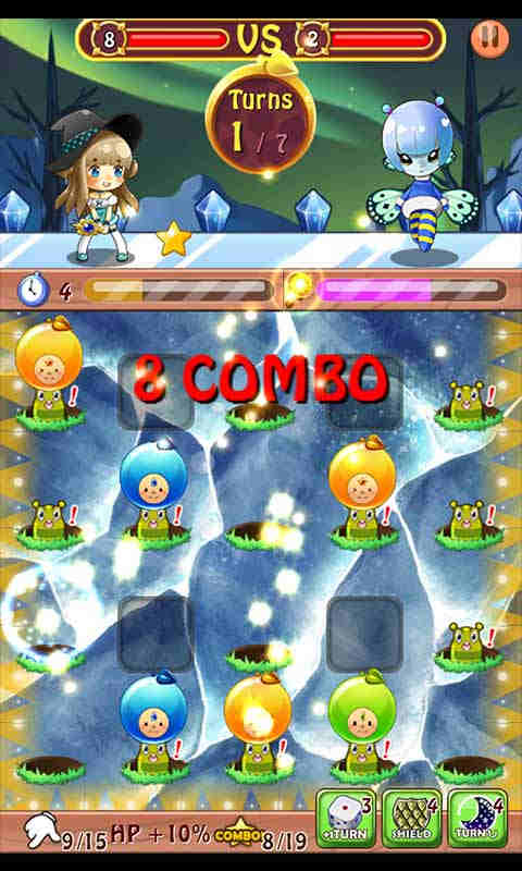 游戲中玩家的屏幕內(nèi)會出現(xiàn)多個(gè)頭頂上放著不同顏色泡泡的“地鼠”,你需要通過點(diǎn)破相應(yīng)顏色的泡泡來集中魔力,最后施放魔法攻擊。顏色就是旁邊邊框和左上方一個(gè)倒計(jì)時(shí)條一樣的東西,跟他們顏色一樣就對了,連擊越高傷害越高。相反的點(diǎn)擊錯(cuò)了的泡泡會打斷連擊數(shù)量,而且還會給怪物補(bǔ)血。總的言之,這個(gè)模式很容易上手,畢竟可以說是打地鼠吧!