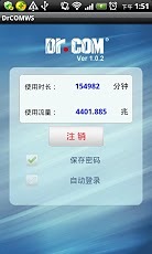 用于移動終端登錄Dr.COM 2166系列接入網(wǎng)關(guān),成功登錄后可查看當(dāng)前計費周期內(nèi)的已使用時長和流量信息,并可保存密碼和設(shè)置成自動登錄。注意:需要運營商啟動本功能。