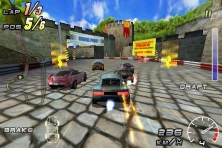 雷霆賽車2 Raging Thunder 2具有多種比賽模式,并可聯(lián)機游戲。美中不足的是只有四種賽車可供選擇。 游戲使用重力感應操作,點擊屏幕中左側(cè)的閃電符號啟動液氮加速。