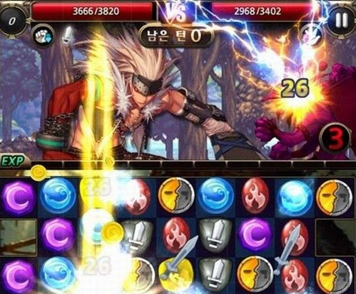 游戲DNF中男鬼劍,女槍,女魔法師為主角的拼圖游戲,玩家需要和怪物(AI)進行回合制的對抗,每當湊齊3個一樣的圖案就可以給與對方傷害,首先將敵人血量打空的一方獲勝。