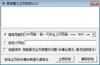 加強保護模式:所生成的保護程序會隱藏進程 不會被其他程序結(jié)束,也不能自主結(jié)束掉每次鎖定時程序會生成一個很小的主頁保護程序,如果有殺毒軟件話會有勿報的可能請放心加到信任里(不再提示),只要加到殺毒的信任里,可無視任何主頁修改程序
