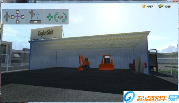 2.來(lái)到車(chē)庫(kù),這里只有一臺(tái)粉色的小小挖土機(jī),看來(lái)我們只能先接一些小工程希望能夠塞滿工人的牙縫。