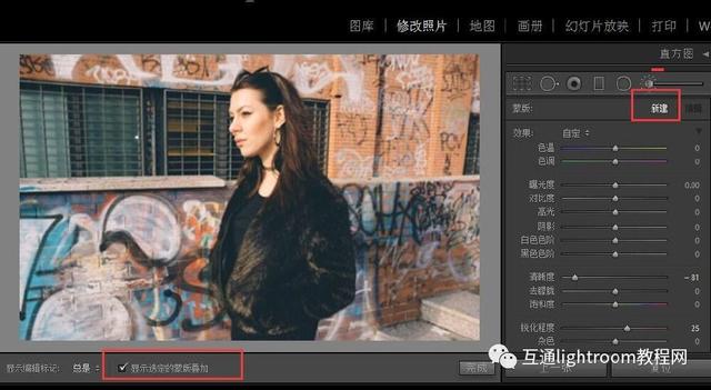 繼續(xù)并點(diǎn)擊“新建”創(chuàng)建您的蒙版,然后點(diǎn)擊底部面板上的“顯示選定的蒙版覆蓋圖”,以查看您的蒙版覆蓋了哪些區(qū)域。