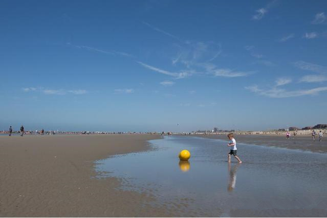 下面這張照片拍攝于海灘,陽(yáng)光明媚但有些朦朧。一個(gè)小男孩跑向一個(gè)明亮的黃色浮標(biāo)躺在一個(gè)淺水坑的海水反映了廣闊的藍(lán)天與一些羽毛狀的云。設(shè)置(f / 8,1 / 640秒,ISO 125)對(duì)于給定的情況是正確的,廣角和高景深使圖像清晰,并且構(gòu)圖效果很好,但是,感覺(jué)這張照片可以得到一些提升以反映海邊陽(yáng)光燦爛的夏日的氣氛。這是直接從相機(jī)拍攝的原始圖像:
