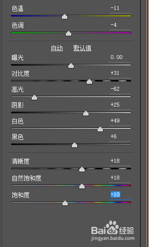 把照片導(dǎo)入到LR里,最好是RAW格式的圖像,對(duì)圖像做調(diào)整,提高對(duì)比度,降低高光和黑色色階,降低飽和度。