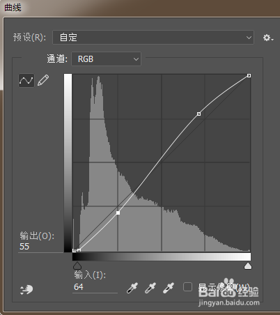 曲線調(diào)整,整體曲線為S型,紀(jì)實(shí)照片主要是整體泛黃,降低保護(hù)度,每張圖的曲線都不同,要分析曲線的數(shù)值,體現(xiàn)出年代感。