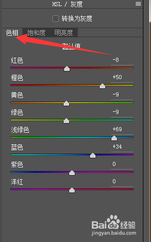 HSL調(diào)整,參數(shù)如圖參考,明白原理。