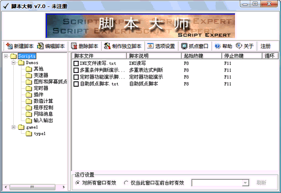 利用ScriptExpert,您可以定義好一系列需要做的動(dòng)作,包括鼠標(biāo)、鍵盤等,然后只要按下一個(gè)預(yù)先定義好的熱鍵,程序即可幫您快速的完成指定的任務(wù),可以極大的減少您重復(fù)按鍵的工作量,甚至可以輕松實(shí)現(xiàn)全自動(dòng)的任務(wù),可廣泛應(yīng)用于工作、學(xué)習(xí)、游戲、上網(wǎng)……等各種場(chǎng)合,套用一句廣告詞:常備重要哦