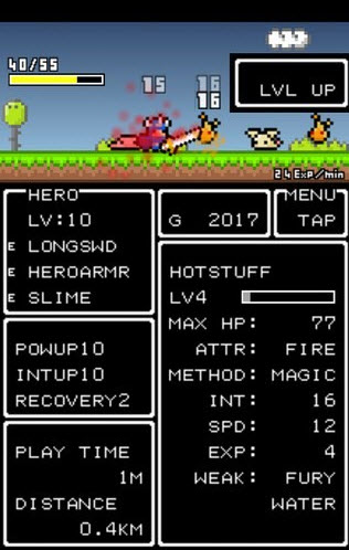 minutequest是復(fù)古風(fēng)格,一個(gè)手指,消磨時(shí)間的RPG!一個(gè)2D領(lǐng)域唯一的選擇是前進(jìn)或死亡!