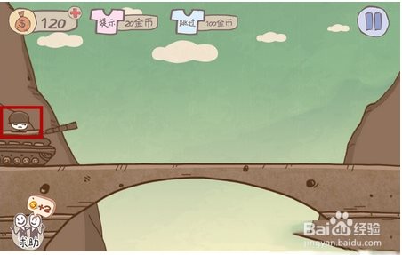 游戲目標(biāo)就是要讓小兵安全的通過大橋??吹蕉垢こ虡?,你當(dāng)然不能直接開著坦克過去,要不然非死不可,點擊坦克,坦克會停下,然后點擊小人,通過即可。