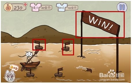 史上最坑爹的游戲攻略第十四關(guān):這關(guān)只要把所有的小旗子換個方向,然后把win 終點的地方移動到屏幕的左邊,在點擊少年即可。如圖紅框位置。