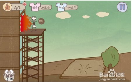 史上最坑爹的游戲攻略第二十四關(guān):這個難度系數(shù)接近零,本關(guān)要先把高臺往下拉,然后點擊下面的彈簧墊,如此就能過關(guān)了
