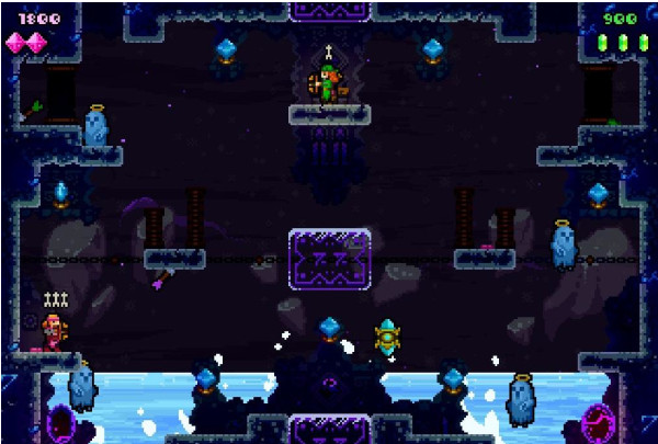 《魔塔大亂斗》游戲中會有很多的敵人來主動攻擊你,玩家可以通過箭矢或者直接踩在敵人的頭上來消滅他們。由于能使用的箭矢有限,玩家需要不停的撿拾射出掉落后的箭矢來補充,還可以取得寶箱來獲得各種輔助道具。【游戲特點】