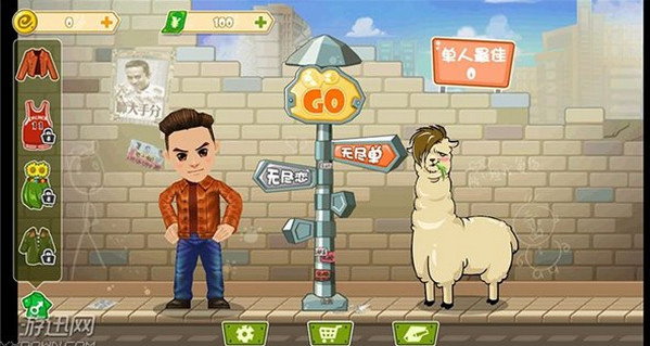 游戲的主菜單上有兩個(gè)選項(xiàng),“無(wú)盡單”和“無(wú)盡戀”,說(shuō)簡(jiǎn)單點(diǎn)就是單人模式和雙人模式。無(wú)盡單:即單人模式,游戲中玩家只能控制一個(gè)角色;