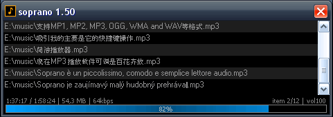 Soprano V1.60 漢化綠色免費(fèi)版 很多人說AirPlay簡約唯美,而Soprano Audio Player簡約到極致,甚至可以說是簡陋——只有一個(gè)播放列表窗口。但反而能給人一種Cool的感覺。
