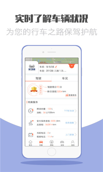 -通過(guò)檔案在地圖中實(shí)時(shí)尋找車輛位置并了解實(shí)時(shí)車況,并可以選擇導(dǎo)航地圖