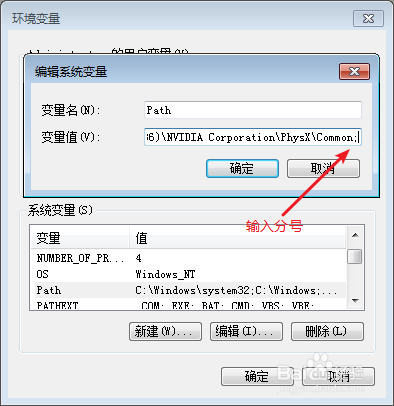 6.在路徑最后一行輸入英文的分號,然后粘貼上面解壓的文件的路徑的地址,點擊確定并退出。
