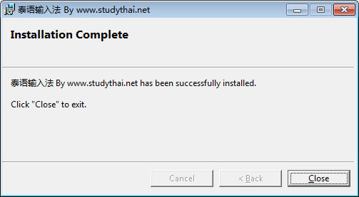 直接雙擊泰語輸入法.exe在彈出成功安裝泰語輸入法提示框后,點Close
