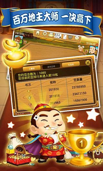 土豪榜、游戲豆榜、元寶榜,和大家一起比拼牌技、拼財(cái)富!