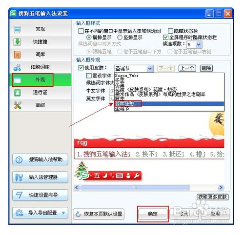 將已經(jīng)下載好的搜狗皮膚拷貝到”AllSkin”文件夾下,然后打開搜狗輸入法狀態(tài)欄,右擊選擇“設(shè)置屬性”,在打開的窗口中選擇“外觀”,然后選擇從皮膚下拉列表框中選擇剛才拷貝的皮膚,最后點擊“確定”即可完成皮膚的更換和應(yīng)用。