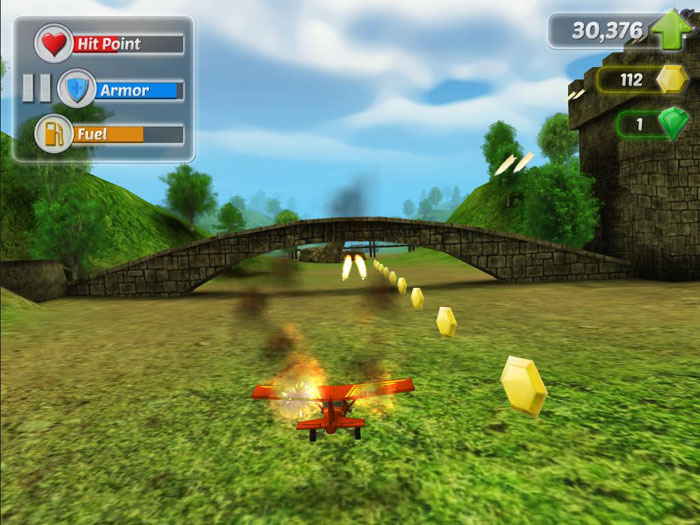 小編最欣賞的其實(shí)是這款游戲的畫(huà)面,雖然游戲采用的是第三人稱視角,但是飛機(jī)在低空極速的飛行穿梭,時(shí)而俯沖,時(shí)而急升,時(shí)而旋轉(zhuǎn),畫(huà)面確實(shí)很有代入感。尤其是飛機(jī)撞到石頭上時(shí),燃燒著的機(jī)翼,分分鐘有可能毀滅,就在這么緊急的氣氛下,玩家們依然還是需要冷靜下來(lái),調(diào)整好心態(tài),好好地控制飛機(jī)。