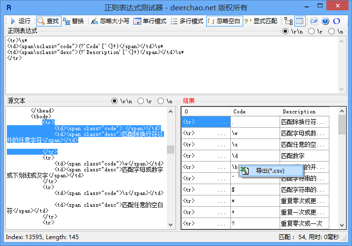 支持快捷鍵操作(F5運行, F4切換查詢替換模式, F6切換結果顯示方式, F2復制代碼, F8切換焦點)