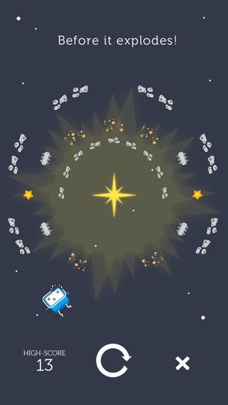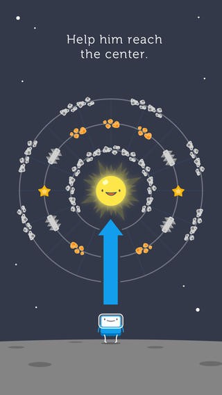 在障礙物轉盤上的也不完全都是致命的隕石,也會出現(xiàn)閃爍的星星和藍色的減號和紅色的加號等等,一旦碰上也許會出現(xiàn)從未有過的狀況,比如說轉盤速度會突然變慢,方便玩家準確的跳躍,不過太陽的燃燒速度也會加快。但是遇到星星可就太好了,因為那是太陽公公的補給養(yǎng)料,每碰到一次就會延長太陽燃燒的時間。