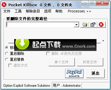 Pocket KillBox V2.0.0.978 漢化修正綠色版 一款小巧的可刪除硬盤(pán)中任意文件的小工具。主要用途就是 清除那些正在運(yùn)行而無(wú)法刪除的文件(類(lèi)似病毒、木馬什么的)。不用為 清除某些病毒或木馬文件而進(jìn)入黑洞洞的DOS界面了。