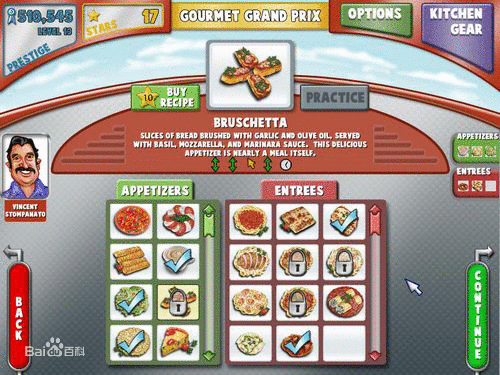 【1】畫 面歐美畫風的餐廳典雅,意大利風格濃郁,讓人不由自主的感覺到美食的誘惑而垂涎欲滴。游戲的操作畫面簡潔清楚,操作主要集中在廚師的廚藝上,更加真實有趣。
