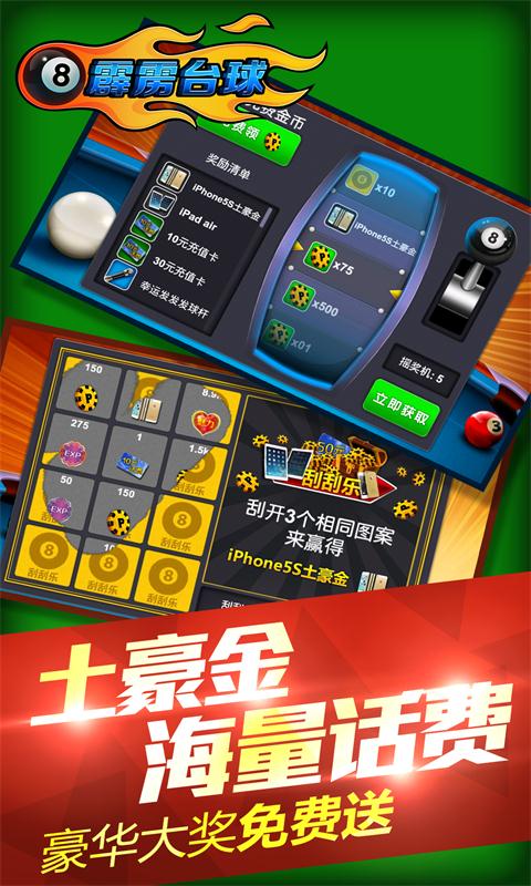 《霹靂臺(tái)球》(8 ball pool)全球最火爆的臺(tái)球游戲強(qiáng)勢(shì)發(fā)布,全球五千萬(wàn)人在線,海量好禮玩就送,讓你一桿爽到底!1.iPhone土豪金、海量話費(fèi)送不停!