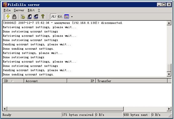 至此,F(xiàn)ileZilla Server的基本設(shè)置就完成并可以運(yùn)行了。