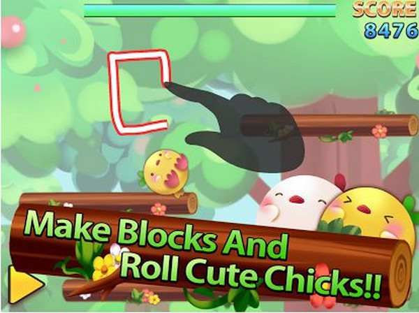 玩家要幫助一只只會(huì)滾的小雞到達(dá)每一個(gè)關(guān)卡指定的終點(diǎn),中途會(huì)有許多障礙等著你解決,這時(shí)玩家可以通過(guò)自己在屏幕上手繪的不規(guī)則多邊形來(lái)幫助小雞通過(guò)障礙。由于玩家可以無(wú)限制地畫(huà)圖形,小心畫(huà)太大把去路都塞??!除了畫(huà)圖形外,玩家還能長(zhǎng)按屏幕放出石頭小雞推動(dòng)小雞前進(jìn),按越長(zhǎng)石頭就越大,而且還不會(huì)消失,要小心使用。每個(gè)關(guān)卡都有設(shè)定等級(jí),當(dāng)玩家在設(shè)定分?jǐn)?shù)線(xiàn)內(nèi)完成游戲就能獲得相應(yīng)的等級(jí),當(dāng)然消耗的時(shí)間越少分?jǐn)?shù)就會(huì)越高。喜歡挑戰(zhàn)的玩家不妨來(lái)試試吧!