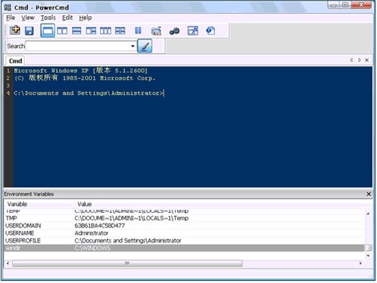 PowerCmd是一款增強(qiáng)版本CMD的工具,CMD是Windows平臺(tái)下的DOS命令行環(huán)境,這個(gè)程序?yàn)镃MD提供了圖形化的工作界面??梢员绕胀–MD工具提供更多選項(xiàng)
