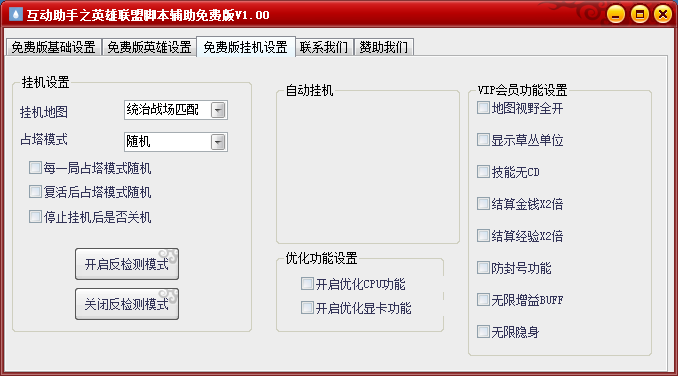 互動助手之英雄聯(lián)盟腳本輔助是一款免費的英雄聯(lián)盟外掛,擁有基礎(chǔ)設(shè)置、英雄設(shè)置和掛機(jī)設(shè)置三大模塊,包含了自定義英雄或隨機(jī)英雄、自動掛機(jī)、喊話等等多項輔助功能。