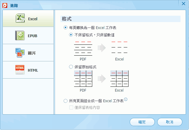 3、另外,在進階設定選項裡,還可以調整 Excel 轉檔后是否保留原始格式,以及 ePUB、圖片、HTML 等轉檔的相關設定。