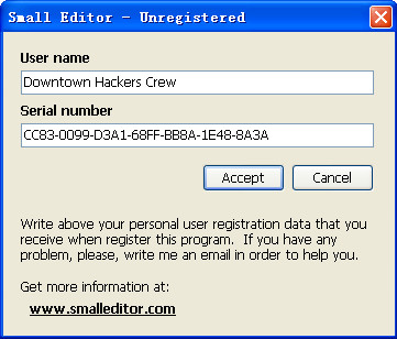 安裝之后,在窗口中鼠標(biāo)右鍵,點(diǎn)擊Register Small Editor,輸入下面的用戶名和序列號(hào)激活SN: