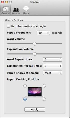 在編輯好自己的生詞表后,我們在Mac上就能啟用MF了,打開后,在Menubar上得MF菜單里選擇一個Word List,然后 開始播放生詞表即可;在單詞播放過程里我們也有充分自定義的權(quán)利,比如設(shè)置彈出頻率,單詞量,解釋量,單詞重復(fù)朗讀次數(shù),以及彈出的位置。