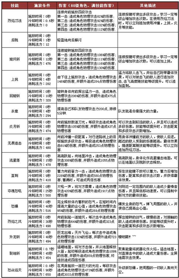 龍女職業(yè)技能(80級(jí)角色滿技能數(shù)值)
