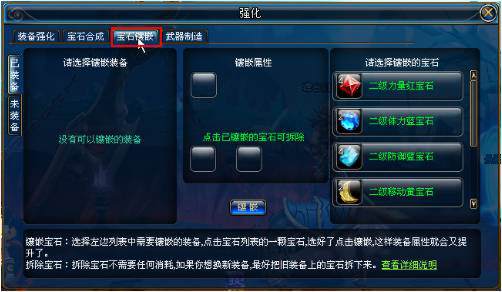 第二步,選擇“寶石鑲嵌”選項(xiàng)卡,打開(kāi)寶石鑲嵌頁(yè)面