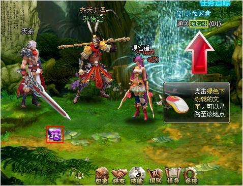 當(dāng)您清除掉當(dāng)前房間中的怪物時(shí),場(chǎng)景中會(huì)出現(xiàn)通往下一個(gè)房間的傳送點(diǎn),紅色箭頭的方向通往妖王所在的房間,跟隨箭頭方向逐步清除掉每個(gè)房間的怪物,直至到達(dá)關(guān)底(小地圖上“獸頭”標(biāo)志的位置就是關(guān)底,BOSS關(guān)卡)。
