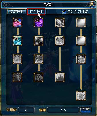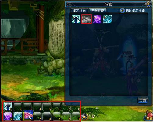 在“已學(xué)技能”頁(yè)面可以查看到已經(jīng)掌握的技能,您可以在這個(gè)頁(yè)面進(jìn)行自定義技能快捷鍵設(shè)置,具體設(shè)置方法請(qǐng)參考:第一次設(shè)置快捷欄