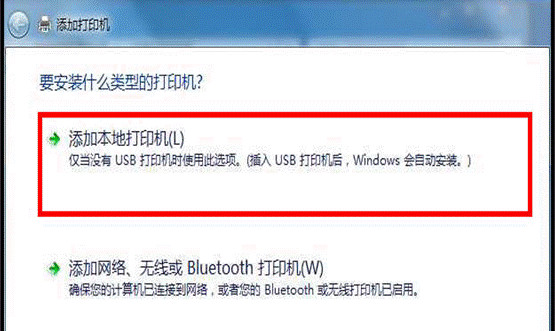點擊添加打印機完畢后,選擇添加本地打印機,點擊“下一步”