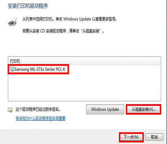 出現(xiàn)打印機型號,點擊“下一步”
