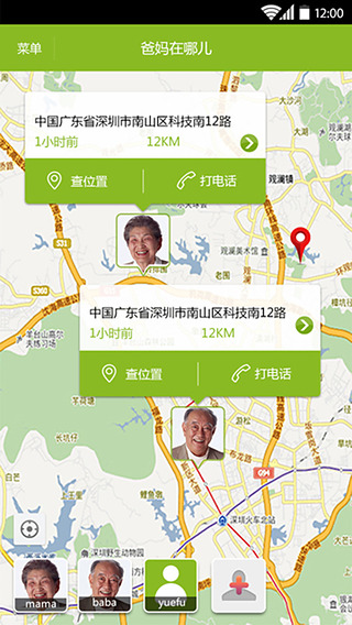 只需簡單一步,輸入家人手機號碼,發(fā)送短信,確認后成功添加,無需再次添加,簡單設(shè)定爸媽昵稱,方便區(qū)分。即刻查看爸媽的位置信息,關(guān)愛如影隨形。