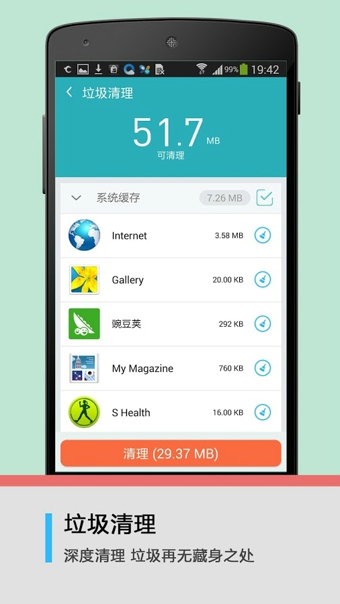 3、垃圾清理:深度清理緩存和殘留文件,使手機更高效的運行。