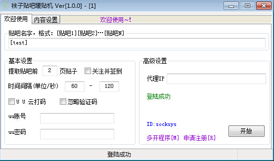 登錄成功后,設(shè)置指定的貼吧,可以多個貼吧,格式為[貼吧名字][第二個貼吧]