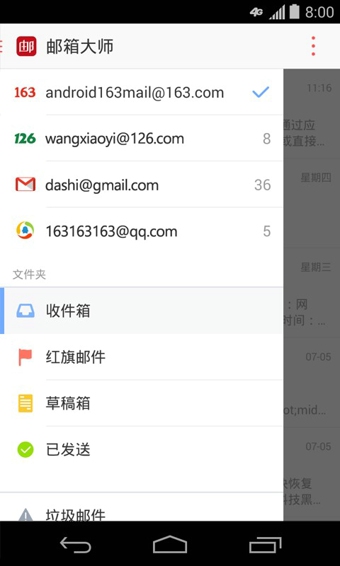 在這里我們就可以隨意的切換已經(jīng)添加上的郵箱了。不用再輸入郵箱號(hào)和密碼那么繁瑣了