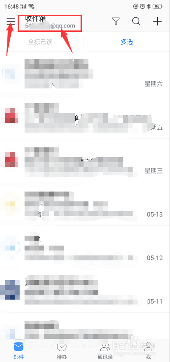 這個(gè)時(shí)候我們可以看到,已經(jīng)變成我們剛才登錄的郵箱了。我們點(diǎn)擊左上角的【主菜單】圖標(biāo)。