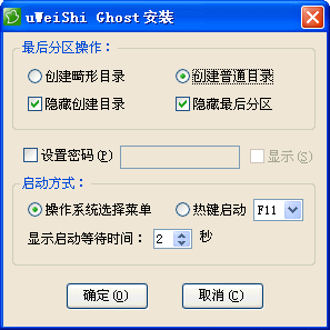 8、在安裝項可設置默認創(chuàng)建的 GHOST目錄是否畸形、是否隱藏,可把最后分區(qū)設置隱藏或顯現(xiàn)