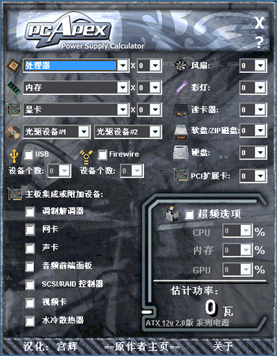 國外一個叫PCApex的網(wǎng)站推出的一個軟件,可以計(jì)算不同的配件組成的電腦需要多少瓦電源。